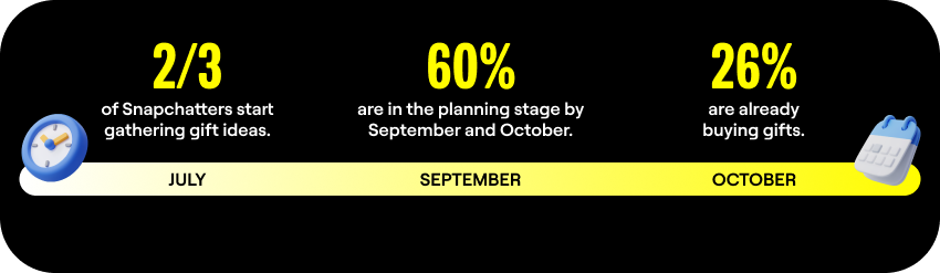 • Two-thirds of Snapchatters say they start gathering gift ideas in July.