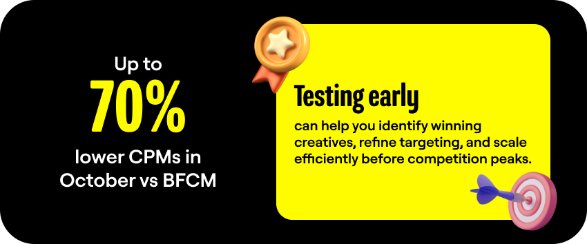 • Testing early can help you identify winning creatives, refine targeting, and scale efficiently before competition peaks.