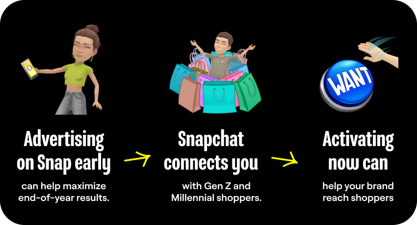 • Advertising on Snap early can help maximize end-of-year results.