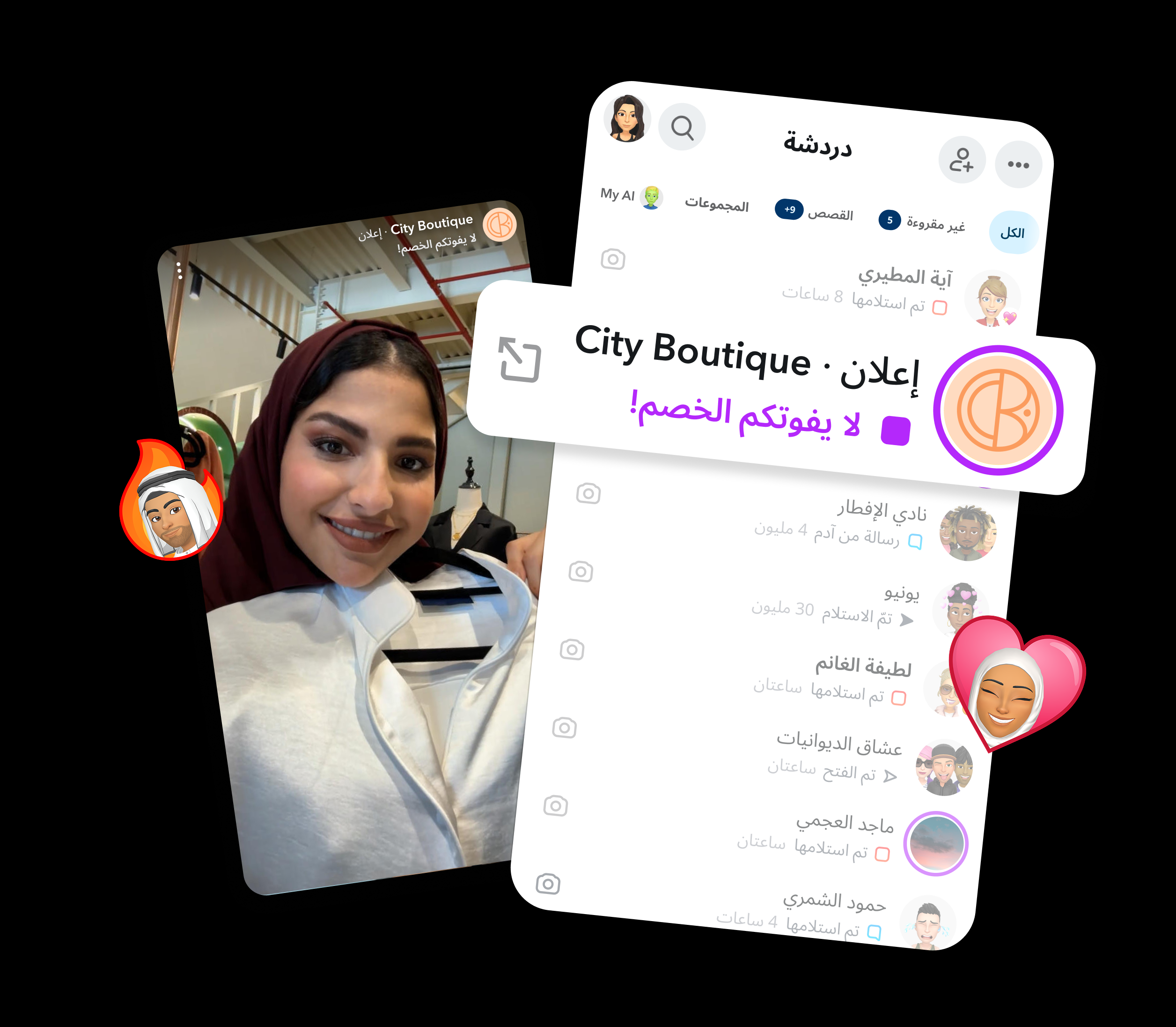 يقدم سناب شات حلولاً بسيطة وفعالة من الإعلانات المصممة لمساعدة علامتكم التجارية على الوصول إلى الجمهور المناسب في الفترات الأكثر أهمية.