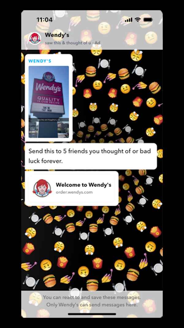 With creative that truly felt like a Snap from a friend - Wendy’s, was able to leverage the new opportunity to not so much feel like an ad placement - but rather a true connection!